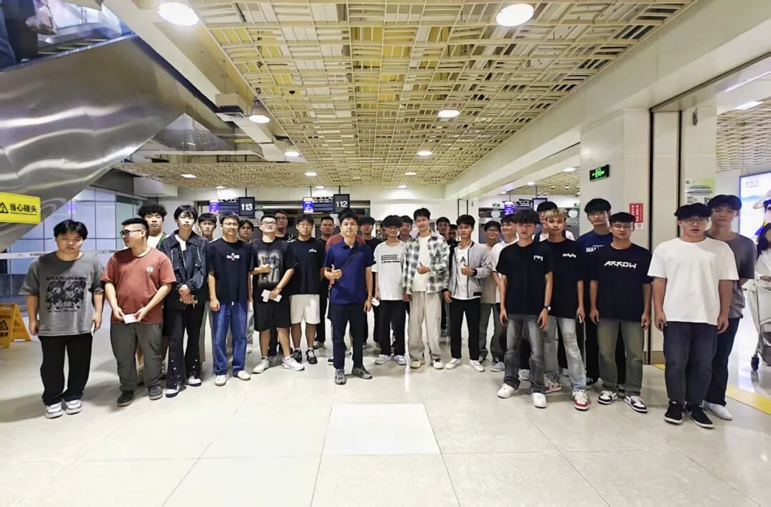 10月10日,第一批由符老师带队的35名新能源专业学生满怀期待地集结出发。在机场,符老师利用登机前的宝贵时间,再次为同学们召开行前动员与安全教育会。他细致讲解了此次实践的行程安排、各阶段学习目标与核心任务,重点强调路途中的人身安全、财产安全以及抵达企业后的纪律要求与职业规范,确保同学们带着清晰目标和严谨态度开启实践之旅。